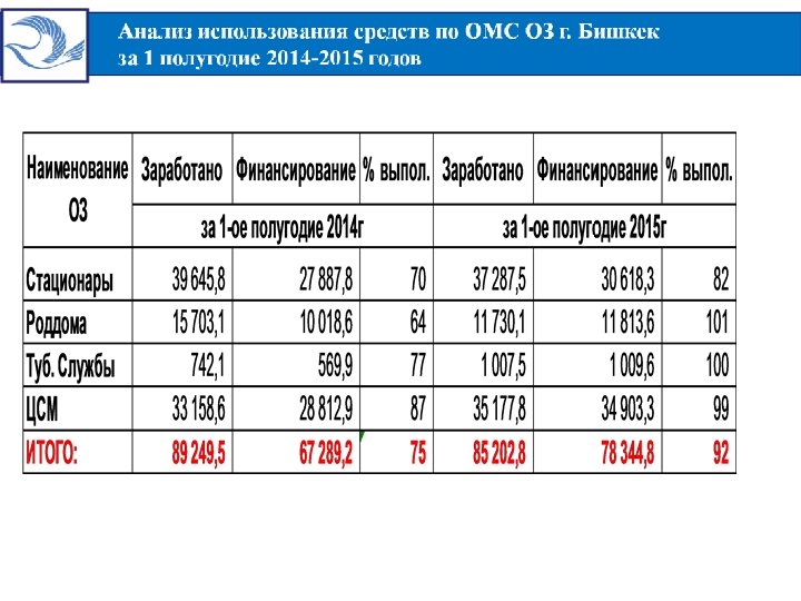 Бишкекское территориальное управление Фонда ОМС Отчет об итогах деятельности БТУ ФОМС и организаций здравоохранения на территории г. Бишкек за 1 полугодие 2015 года Бишкек 2015 г.
