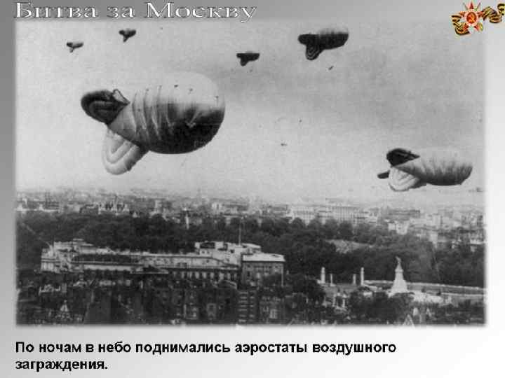 Планы сторон Германия Адольф Гитлер рассматривал взятие Москвы, столицы СССР и самого большого советского города, как одну из главных военных и политических целей операции Барбаросса. «Операция Тайфун» : замысел операции предусматривал мощными ударами крупных группировок, сосредоточенных в районах Духовщины Рославля и Шостки, окружить основные силы войск Красной Армии, прикрывавших столицу, и уничтожить их в районах Брянска и Вязьмы, а затем стремительно обойти Москву с севера и юга с целью её захвата. СССР Командовать войсками, защищавшими подступы к Москве был назначен выдающийся полководец Г. К. Жуков. Был разработан план обороны Москвы: защитить столицу с неба, отбросить врага от Москвы.