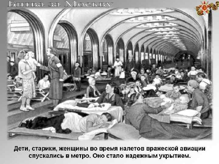 24 октября – 5 декабря – Тульская оборонительная операция. Была выполнена главная ее задача – отразить наступление немецко-фашистских войск на тульском направлении и сорвать их попытки обойти Москву с юга. Начало ноября – наступление фашистов на Москву остановлено. 6 ноября – несмотря на близость линии фронта, как обычно, состоялось заседание Московского совета депутатов трудящихся, представителей партийных и общественных организаций, посвященное очередной (24) годовщине Октябрьской революции. Заседание проходило на станции метро «Маяковская» .