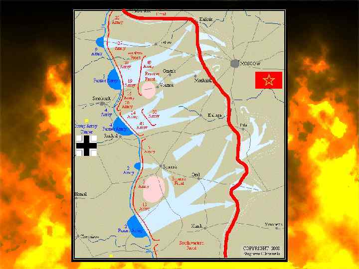 Силы и средства Красная Соотношени Вермахт Армия е Личный состав (тыс. чел. ) 1100 1708 1: 1, 5 Орудия и минометы 7652 13500 1: 1, 8 Танки 774 1170 1: 1, 5 Самолеты 1000 615 1, 6: 1