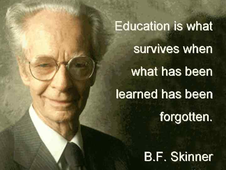 Скиннер, Беррес Фредерик Б. Скиннер (1904 -1990) — американский психолог, представитель бихевиоризма, профессор психологии Гарвардского университета, внес значительный вклад в теорию и методики обучения, разработал филосою "науки человеческого поведения", служащую основой социального бихевиоризма. Основные произведения: "The behavior of organism" (1938), "Science and human behavior" (1956), "Reflektions on bahaviorism ans society" 1978 Публикуемый фрагмент представляет собой перевод введения из книги Б. Скиннера "Что такое бихевиоризм? ", в котором приводятся основные аргументы против бихевиоризма, с которыми полемизирует Скиннер.