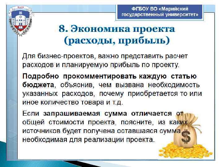 По заявке 2017 г. 17. Структура расходов К постоянным расходам относятся арендные платежи, проценты по кредитам, заработная плата персонала, находящегося на окладе, амортизация, услуги связи и другие. К переменным расходам - сырье и материалы, использующиеся для производства продукции, сдельная зарплата работников, % вознаграждения агентам по продажам, стоимость приобретения товаров для перепродажи и т. д опишите переменные и постоянные расходы в вашем проекте 18. Модель монетизации 19. Результаты проекта 20. Оценка эффективности проекта 21. Устойчивость проекта опишите, каким образом вы планируете зарабатывать (окупать вложения и инвестиции) в вашем бизнес-проекте, каков срок окупаемости инвестиций опишите, какие изменения произойдут по итогам реализации проекта, какие результаты будут достигнуты опишите методы оценки эффективности проекта и ключевые показатели, которые вы будете использовать для оценки эффективности проекта (ключевые метрики) опишите стадии развития (жизненные циклы) вашего проекта, их продолжительность во времени в среднесрочной перспективе (3 – 5 лет) 22. Бюджет проекта укажите: общий бюджет на запуск проекта (тыс. руб. ) объем запрашиваемых у донора средств объем собственных средств и / или инвестиций, привлекаемых из других источников оборот за год