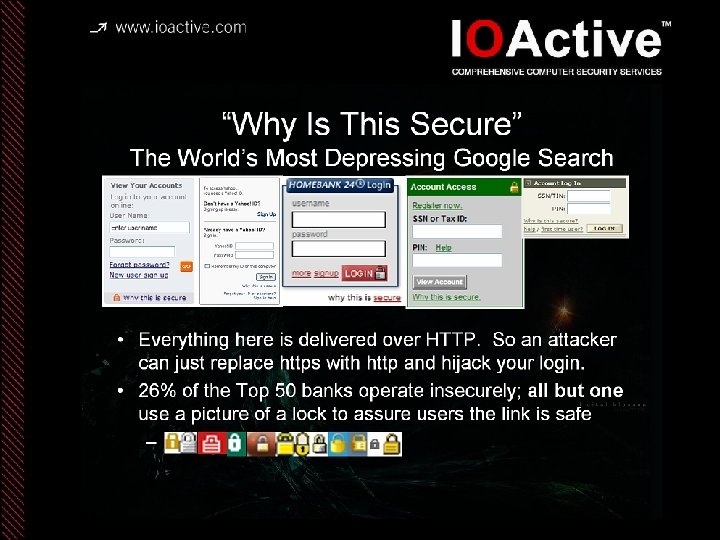 So Right About Now You’re Probably Thinking… • OK. Clients are hosed. Web 2. 0 is hosed. But my intrawebs are safe! – Are they? Are they really?