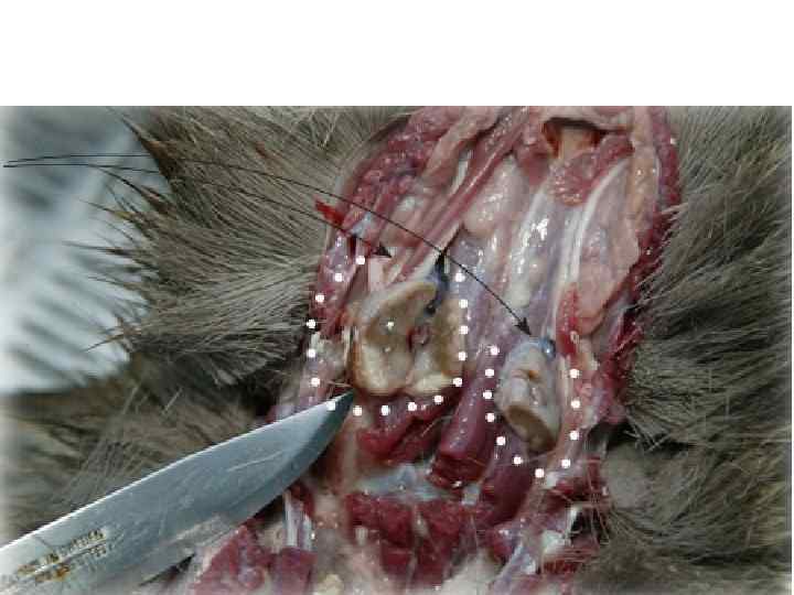 • Регистрировать любые язвы или абсцессы на голове и ногах. Проверяется полость рта, язык и губы на наличие любых отеков, волдырей или абсцессов. Осматривать лимфатические узлы, отмечая любое расширения или гноя. • Также обратите внимание на любые признаки плеврита, он легко идентифицируются путем обнаружения спаек легких с грудной стенкой. Отыскать и отметить какие-то ошметки, абсцессы, огрубевшие участки или необычное изменение окраски в легких, которые могут, в случае абсцессов, указывают туберкулёз или паразитарную инфекцию