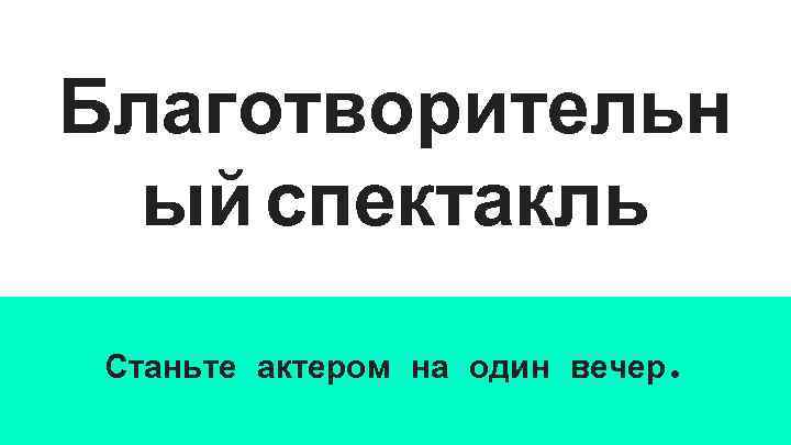 Благотворительн ый спектакль Станьте актером на один вечер.