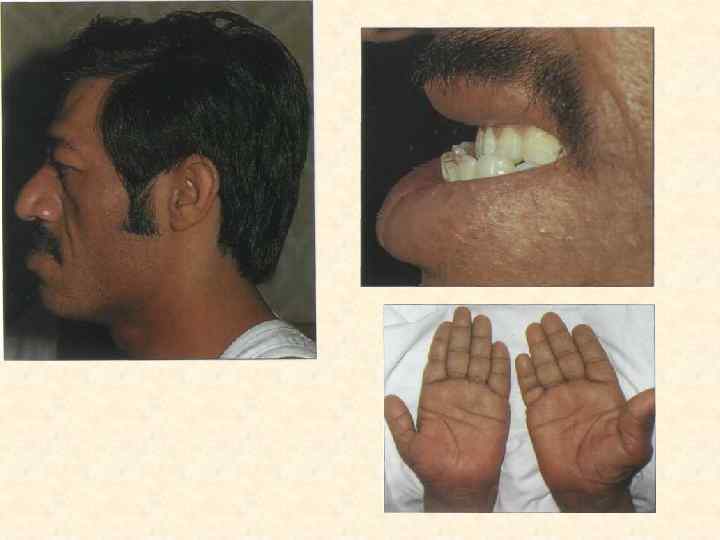 1 - атрофия сосочков, 2 – сухой язык, 3 - макроглоссия