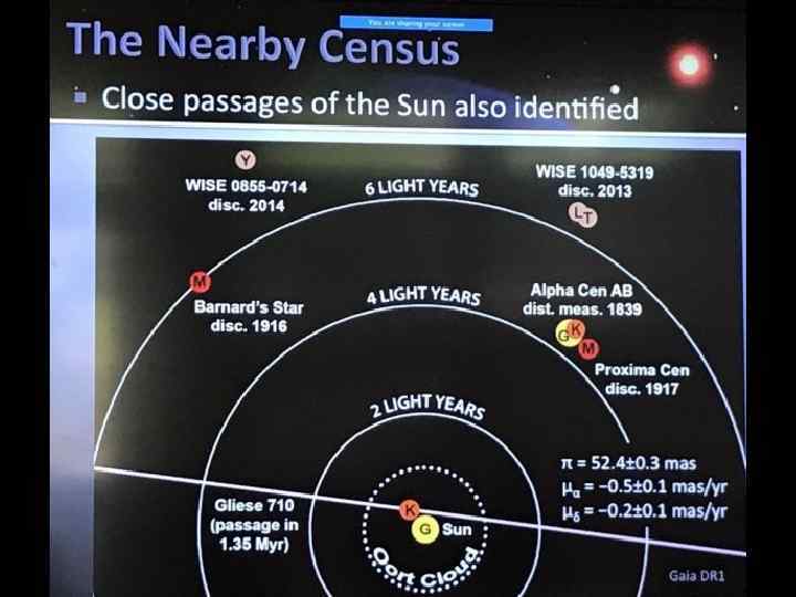 Звезда Шольца WISE 0720 -0846 прошла на расстоянии ~52000 а. е. (0, 25 пк; 0, 8 св. лет) от Солнца ~70 тыс. лет назад ~В 4. 5 раза меньше расстояния до Проксимы! M 9± 1+T 5, v=18. 3 m, масса 86 ± 2 массы Юпитера Ее блеск был 10, 3 m Сегодня – 5 -7 пк (20 св. лет), Vr=83 км/с Последствия: появления новых комет только через 2 миллиона лет?