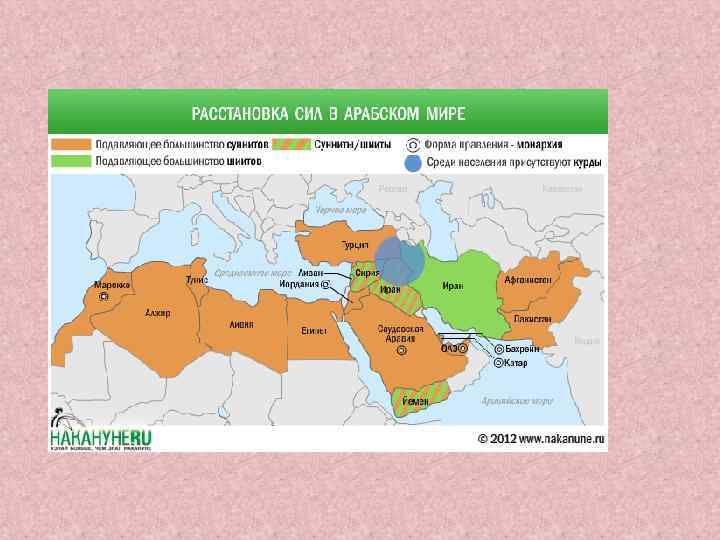 Асад и его враги • Союзники : Иран и "Хезболла", представляющие т. н. "шиитскую ось « • В-третьих, если выше обозначены правительства государств, то что можно сказать о народе. А вот народы арабских государств (выберем их и не будем рассматривать Турцию, Иран, Израиль, где арабы составляют меньшинство) относятся к Асаду по-разному, и здесь на их мнение влияют их собственные установки: • 1) Идеологические предпочтения. Арабские националисты, коммунисты, левые всех мастей, с ярко выраженной светской ориентацией, скорее симпатизируют Асаду, чем его оппонентам. Исламисты, монархисты, ориентированные на западные, европейские и американские, ценности "либералы" скорее будут против него, чем за. • 2) Антиамериканизм и антисионизм. Не будучи идеологией, эти направления мысли крайне сильны в арабских обществах, и образ Асада как "главного врага США и Израиля" обеляют его в их глазах.