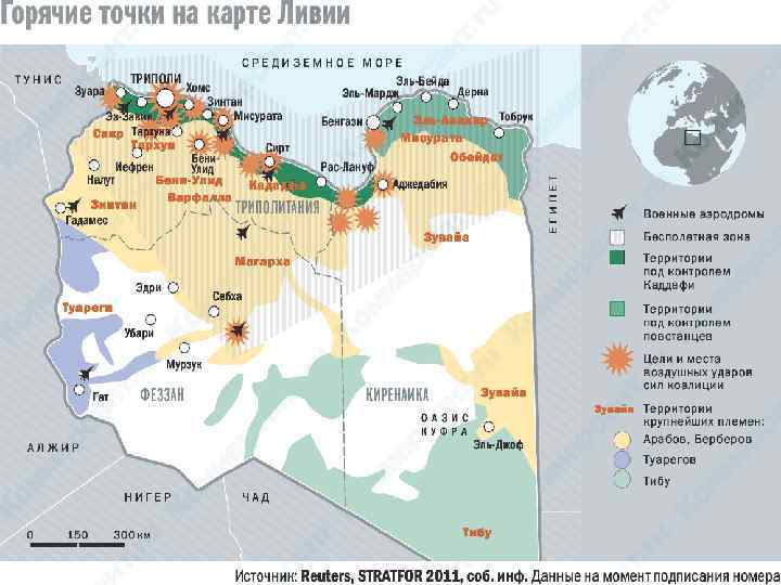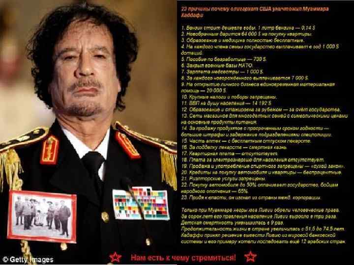 • В начале 2011 года в ряде стран на ближнем востоке произошли революции, которые назвали «арабской весной» . После Туниса и Египта волна протестов докатилась и до Ливии. • Мятежники действовали из Бенгази. Там произошли массовые выступления, которые распространились по всей стране. Повстанцев поддержали НАТО и Совбез ООН. В августе им удалось взять Триполи. • 20 октября 2011 года они заявили о взятии родного города Каддафи, Сирта, и смерти самого полковника.