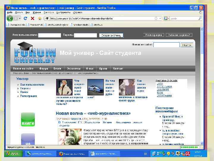 Анна Мельникова – редактор сайта Univer. by «Я приняла приглашение Александра Александровича Градюшко, предложившего меня провести лекцию об Univer. by. потому что мне хотелось найти среди студентов единомышленников и заинтересовать их своим сайтом так же сильно, как им увлечена сама я. Работать одной легче, зато в команде – интереснее. Мне хотелось увидеть на сайте свежий взгляд и найти помощников, с которыми я могу поделиться теми знаниями, которые я наработала за последний год. А ещё было любопытно посмотреть на вас, типа «Вооот вы какииииеее, веб-журналисты…»