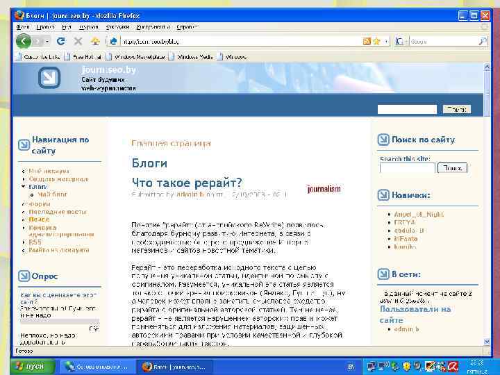 Блогосфер а «… веб-журналистика не обладает никакими принципиально иными выразительными средствами, не имеет и какого-то принципиально иного характера их использования. вся специфика работы в онлайн-сми сводится лишь к формату и технологическими нюансами. но то и другое отличается от одной редакции к другой. »