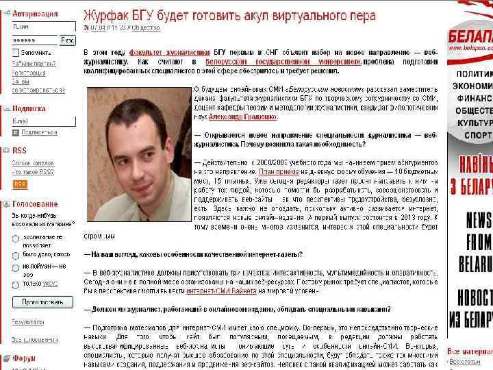 Я думаю, что в Беларуси стоит учить веб-журналистов, чтобы байнет шёл по по пути скорейшего развития. Виолетта Безниско Первый курс,