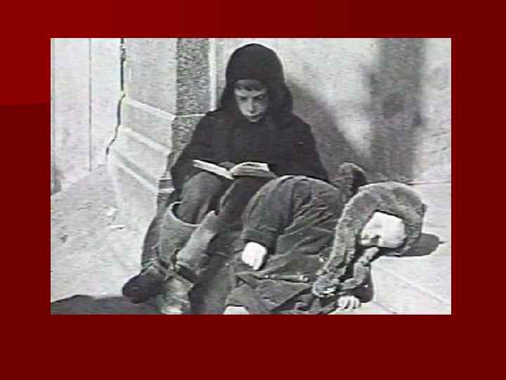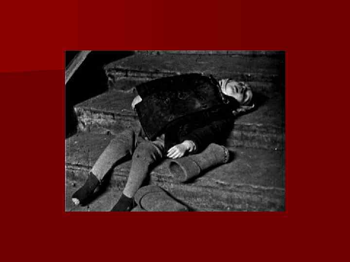 Дети войны Чёрное дуло блокадной ночи. . . Холодно, холодно очень. . . Вставлена вместо стекла картонка. . . Вместо соседнего дома – воронка. . . Поздно. А мамы всё нет отчего-то. . . Еле живая ушла на работу. . . Есть очень хочется. . . Страшно. . . Темно. . . Умер братишка мой. . . Утром. . . Давно. . . Вышла вода. . . Не дойти до реки. . . Очень устал. . . Сил уже никаких. . . Ниточка жизни натянута тонко. . . А на столе – на отца похоронка. . .