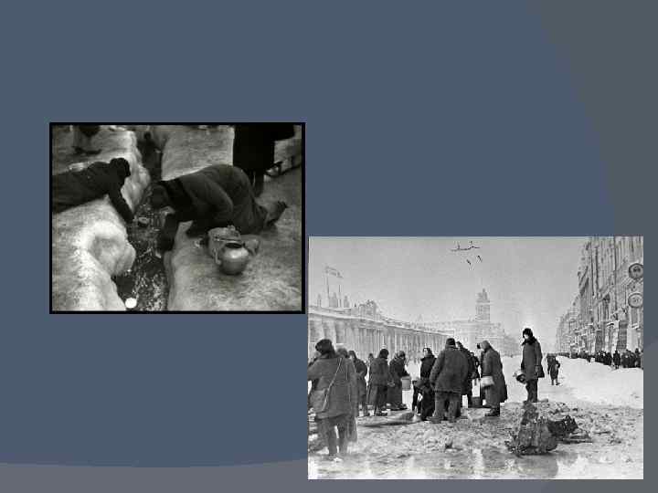 Блокада Ленинграда К началу блокады в городе не имелось достаточных по объёму запасов продовольствия и топлива. Единственным путём сообщения с Ленинградом оставалось Ладожское озеро, находившееся в пределах досягаемости артиллерии и авиации осаждающих, на озере также действовала объединённая военноморская флотилия противника. Пропускная способность этой транспортной артерии не соответствовала потребностям города. В результате начавшийся в Ленинграде массовый голод, усугублённый особенно суровой первой блокадной зимой, проблемами с отоплением и транспортом, привёл к сотням тысяч смертей среди жителей.