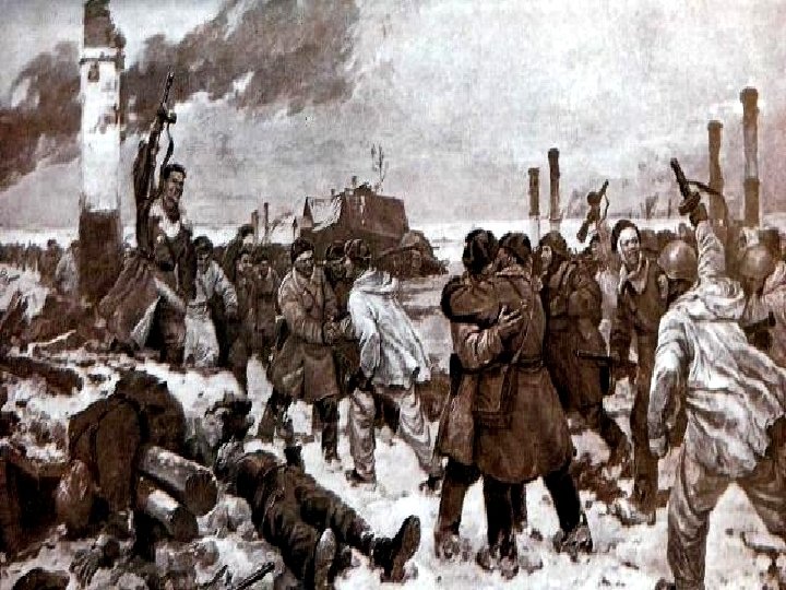 Прорыв и снятие блокады. 2 декабря 1942 года Ставка Верховного главнокомандующего утвердила план операции Волховского и Ленинградского фронтов, условно названный "Искра". Местом прорыва блокады был избран узкий выступ, разделявший войска фронтов. Учитывая выгодную обстановку, сложившуюся к началу следующего года, Ставка приказала 12 января 1943 года перейти в наступление южнее Ладожского озера и прорвать блокаду Ленинграда. 12 января 1943 года в 9 часов 30 минут утреннюю тишину разорвал залп "катюш" - во всей полосе наступления началась артиллерийская подготовка. На лед вышли тысячи солдат. К концу первого дня наступления войска закрепились на двух плацдармах на левом берегу Невы. К полудню 18 января в районе Рабочих посёлков № 5 и 1 произошла встреча двух фронтов. В ночь на 19 января 1943 года радио Ленинграда передало, что блокада прорвана.