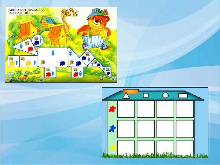 Задачи: Ø Познакомить с формой, цветом, размером, толщиной объектов. Ø Развивать пространственные представления. Ø Развивать логическое мышление, представление о множестве, операции над множествами (сравнение, разбиение, классификация, абстрагирование). Ø Развивать умения выявлять свойства в объектах, называть их, адекватно обозначать их отсутствие, обобщать объекты по их свойствам, объяснять сходства и различия объектов, обосновывать свои рассуждения. Ø Развивать знания, умения и навыки, необходимые для самостоятельного решения учебных задач. Ø Развивать познавательные процессы, мыслительные операции. Ø Воспитывать самостоятельность, инициативу, настойчивость в достижении цели. Ø Развивать творческие способности, воображение, фантазию, способности к моделированию и конструированию. Ø Развивать психические функции, связанные с речевой деятельностью.