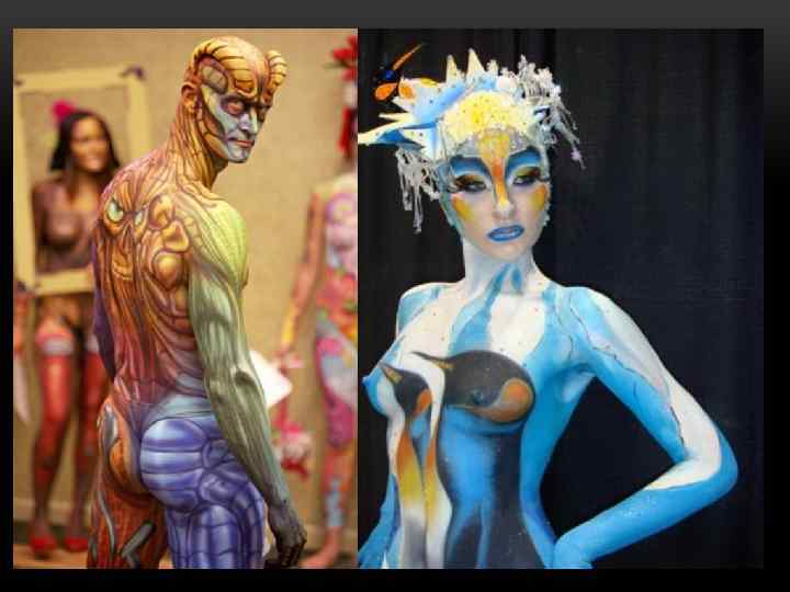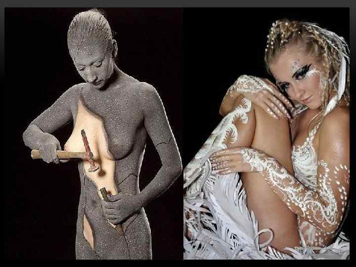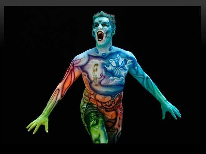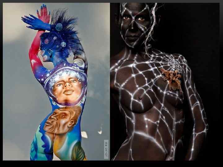 ЧТО ТАКОЕ БОДИ-АРТ? • Это одна из форм авангардного искусства, где главным объектом творчества становится тело человека, а содержание раскрывается с помощью невербального языка: поз, жестов, мимики, нанесения на тело знаков, «украшений» . Объектом Боди-арта также могут выступать рисунки, фото, видео и муляжи тела.