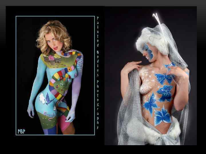 БОДИПЕЙНТИНГ • Роспись по телу, бодипейнтинг (англ. body painting) — это искусство рисования на теле. Это самый распространённый вид боди-арта, в котором основное место занимает рисование на лице (фейс-арт) и теле. Общеизвестен нейл-арт — роспись ногтей. Менди — роспись тела с использованием хны, самая долговечная — держится три недели.