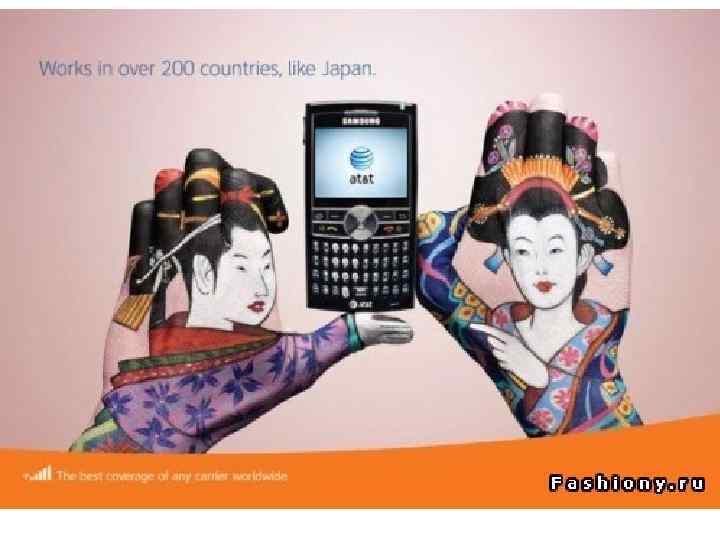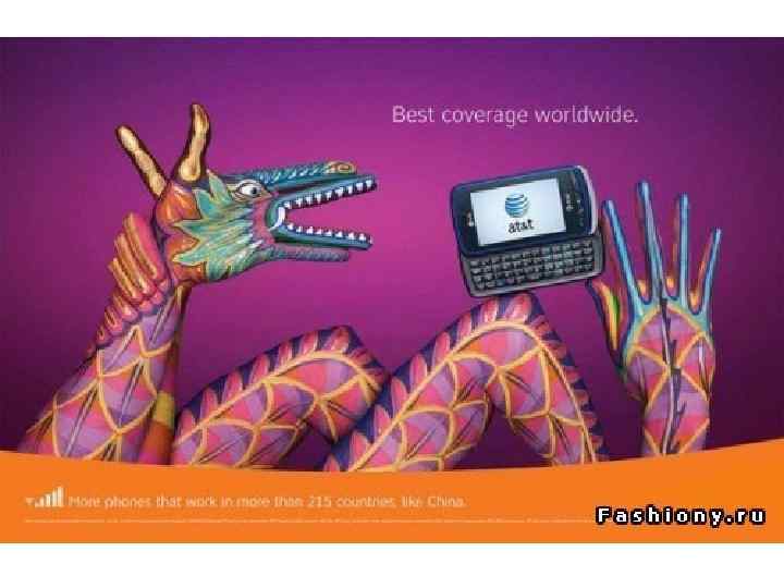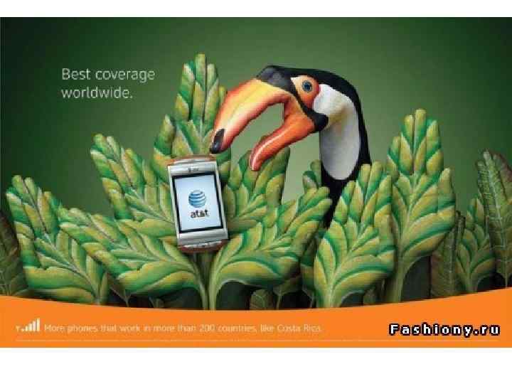 AT&T Inc — крупнейшая американская компания в США по телекоммуникации. В 2010 году эта компания представила свою креативную рекламу, использовавшую боди-арт.