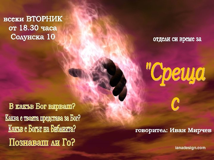 Въпроси за дискусия: 1. Сатана е наречен княз на този свят. Това не оспорва ли Божия суверенитет? 2. Защо суверенният Бог е допуснал злото да съществува? 3. Смятате ли, че всяка власт е от Бога? А Сталин, Хитлер, Тодор Живков? 4. Нашата свободна воля отнема ли властта на Бог над нас?