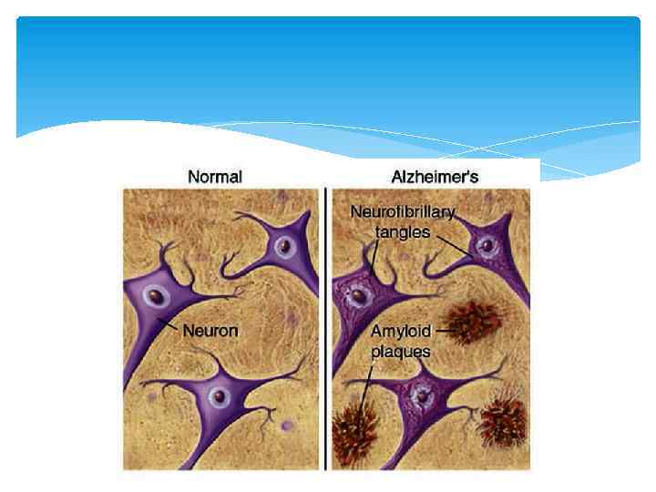 Патоморфология Макроскопически выявляется диффузная атрофия головного мозга с уменьшением объема извилин и расширением корковых борозд, более выраженная в височно-теменной области Гистологически определяются нейрофибриллярные клубочки, амилоидные бляшки, уменьшение численности нейронов, амилоидная ангиопатия.