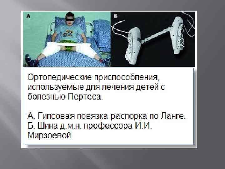 Профилактики болезни Пертеса. Однако ранняя диагностика и правильное лечение дают хорошие результаты – большинство детей возвращаются к обычной жизнедеятельности в течение 18 -24 месяцев.