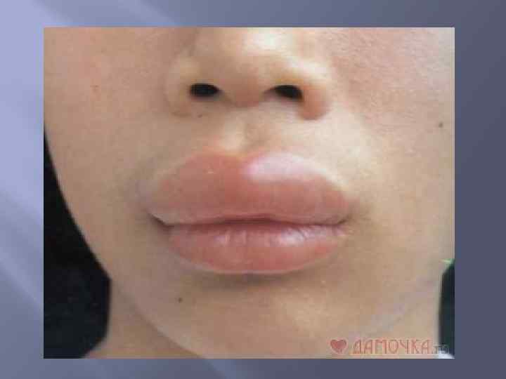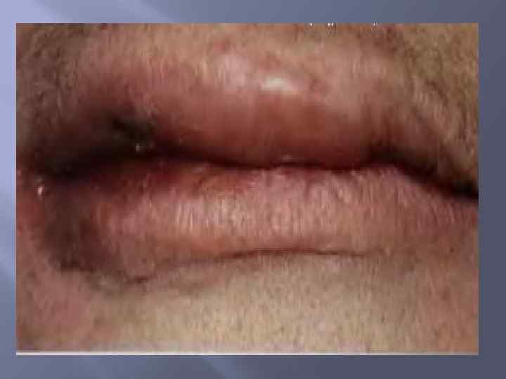 Контактный (аллергический) хейлит Заболевание губ, в основе которого лежит аллергическая реакция замедленного типа на разнообразные раздражители при контакте их с красной каймой губ. Этиология: химические вещества, входящие в состав губной помады, зубных паст, пластмассы зубных протезов и др. . Клиническая картина. Больные жалуются на появление сильного зуда, жжения, отека и покраснения.