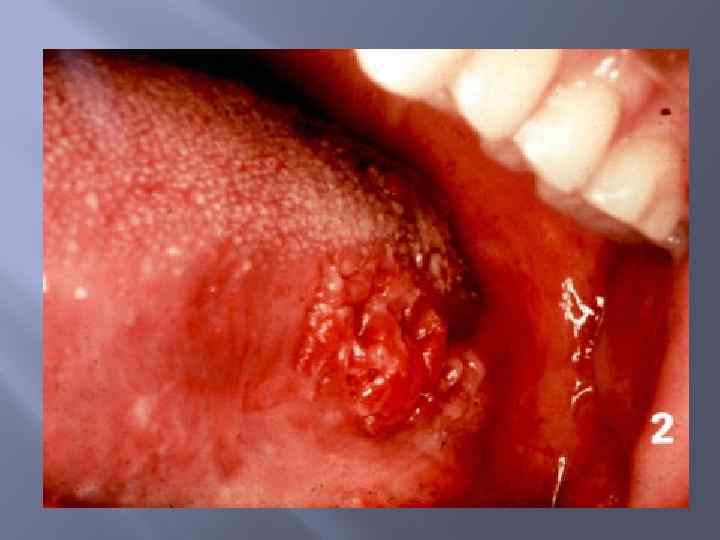 Рак языка Составляет от 2 до 3% всех злокачественных опухолей; у мужчин встречается в 2— 3 раза чаще. Предрасполагающими в его развитии могут быть кариозные зубы, плохо пригнанные протезы, курение, жевание табачной смеси. К предраковым заболеваниям относятся: лейкоплакия, простые язвы и длительно не заживающие трещины слизистой оболочки. Рак языка обычно локализуется на его боковом крае, соответственно коренным зубам, или на спинке языка, чаще в средней или задней трети края языка.