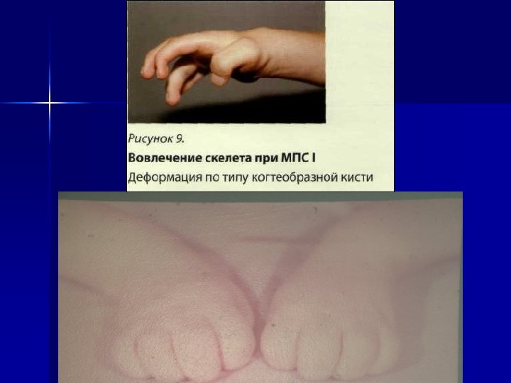 Мукополисахаридозы при этой патологии в результате недостаточности лизосомальных ферментов изменяется катаболизм гликозаминогликанов, происходит накопление их в лизосомах, что приводит к грубой клеточной патологии и возникновению характерной клинической картины