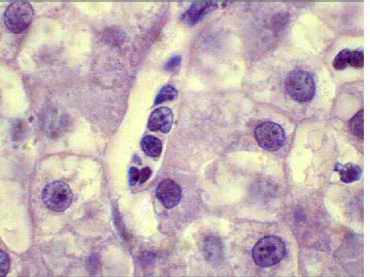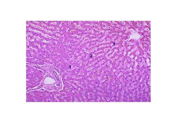 Печеночный ацинус • -Первая зона- (темные гепатоциты) интенсивный метаболизм протеинов и синтез плазменных белков • -Третья зона- (светлые гепатоциты) преобладает обмен липидов и ксенобиотиков • -Вторая зона-промежуточное положение • Зональная гетерогенность -динамическая и функциональная структура как в норме, так и при патологии