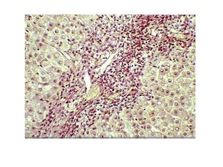 Воспалительная инфильтрация • • -портальная -интралобулярная (зональная) -в синусоидах Преимущественно лимфоциты и гистиоцитарные элементы