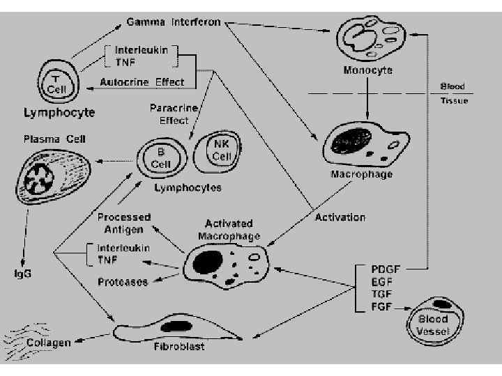 Патогенез фиброза Гепат Тромбоц Лимфоц АА и ПОЛ ЗК Кол 1 Кол 3, 4 ФН Ламинин ММП