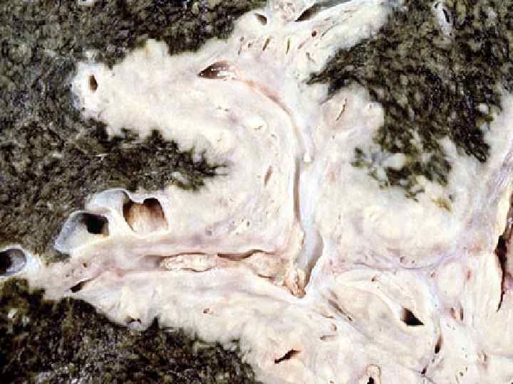 Фиброз • -зональный (центролобулярный) • Развивается при ХВГ, алкогольном поражении печени, нарушении оттока по печеночным венам. Приводит к образованию соединительнотканных септ, располагающихся от центральной вены к портальному тракту • септальный- образование септ-перемычек • мультилобулярный- исход массивных некрозов