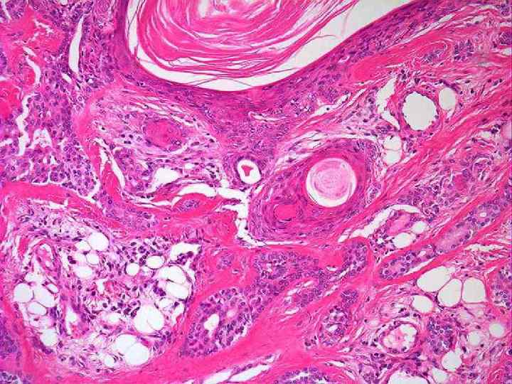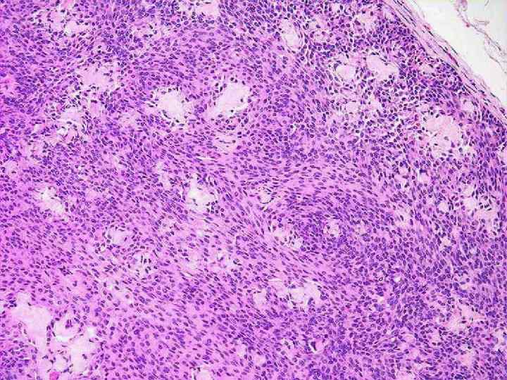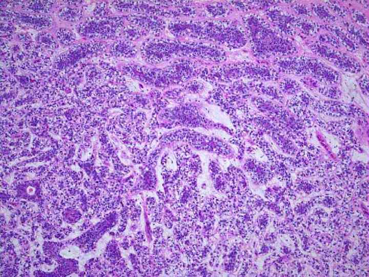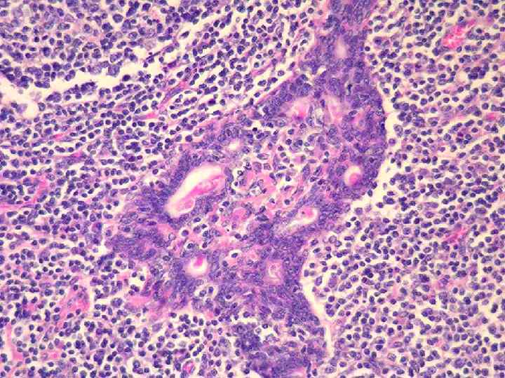 Мукоэпидермойдный рак • Женщины 50 -60 лет • Околоушная железа • Нередко возникает на небе из малых слюнных желез • Склонен к инвазии и метастазированию лимфогенным путем не зависимо от степени дифференцировки