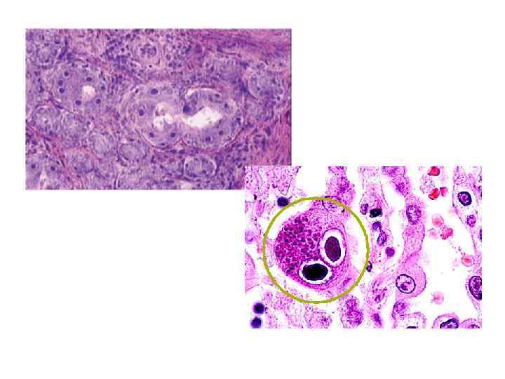Патологическая анатомия Макро- Микро- • Резкое увеличение обеих околоушных желез • Тяжелая белковая дистрофия клеток ацинусов и протоков • Серозно-фибринозное воспаление в интерстиции • Лимфогистиоцитарная инфильтрация