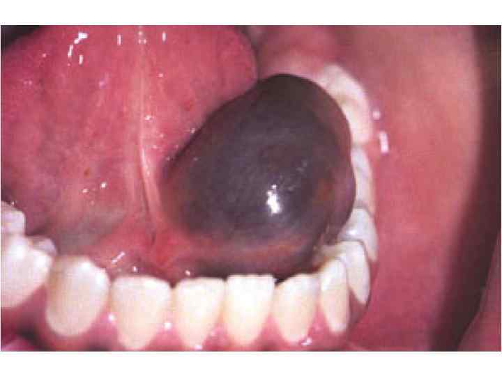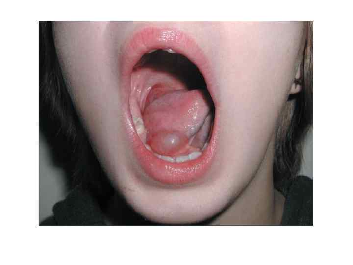 Киста подъязычной слюнной железы • Ранула «лягушачья опухоль» • Переднебоковой отдел дна полости рта, вблизи уздечки языка • Связана с подъязычной слюнной железой
