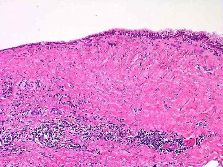 Слизистая киста Макро- Микро- • Вид опухоли • При удалении частые рецидивы • Тонкая соединительнотканная капсула • В просвете слизистые клетки и слизь
