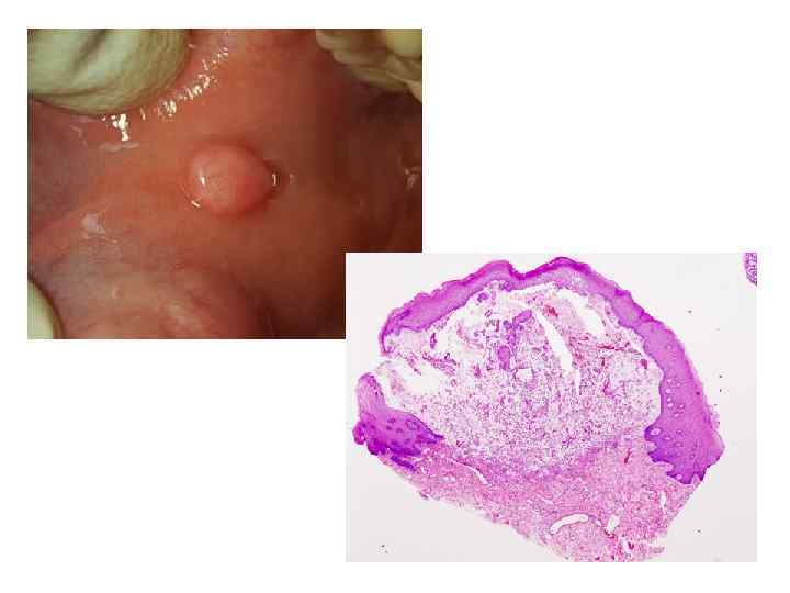Ретенционная киста Макро- Микро- • Шаровидное возвышение • Под слизистой полости рта • Флюктуирует • Соединительная ткань, выстланная уплощенным эпителием • Содержимое прозрачное или гной при инфицировании