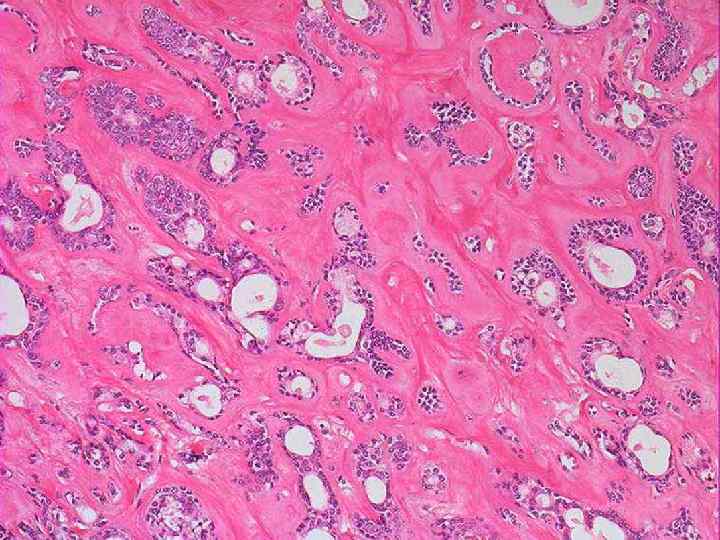 Карцинома в плеоморфной аденоме • • Третья по частоте встречаемости Делится на инвазивную и неинвазивную Пик встречаемости 40 лет Локализация околоушная и поднижнечелюстная железы