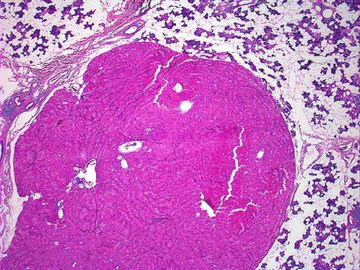 Миоэпителиома Макро- Микро- • Неправильной формы узел • Ретикулярная с миксойдным • Белесоватая на разрезе компонентом • Солидный тип • Смешанная форма