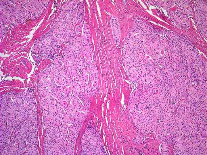 Эпителиально-миоэпителиальная карцинома Описана в 1972 году Donath K. Чаще женщины Чаще 70 -80 лет Чаще околоушная железа Отличается инвазивным ростом и рецидивами • Дает метастазы в шейные лимфоузлы • • •
