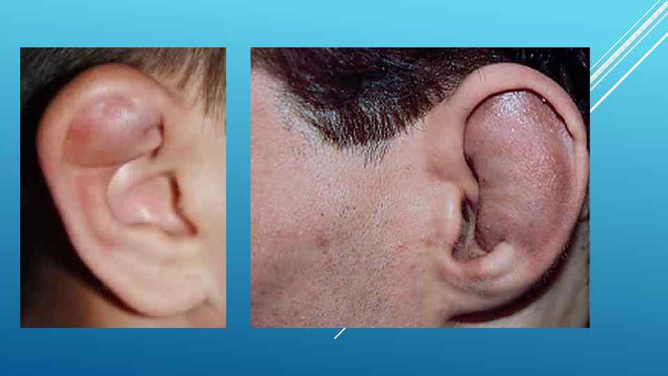 БОЛЕЗНИ УХА Отгематома -кровоизлияние в ушной раковине между хрящом и надхрящницей. Перихондрит ушной раковины -возникает при проникновении инфекции в надхрящницу ушной раковины при механической или термической травме(ожоги, отморожения) Фурункул наружного слухового прохода -частое заболевание возникающее в результате внедрения инфенкции Наружный отит- разлитое воспаление кожи наружного слухового прохода. Серная пробка -закупорка наружного слухового прохода серой Средний отит- острое воспаление среднего уха