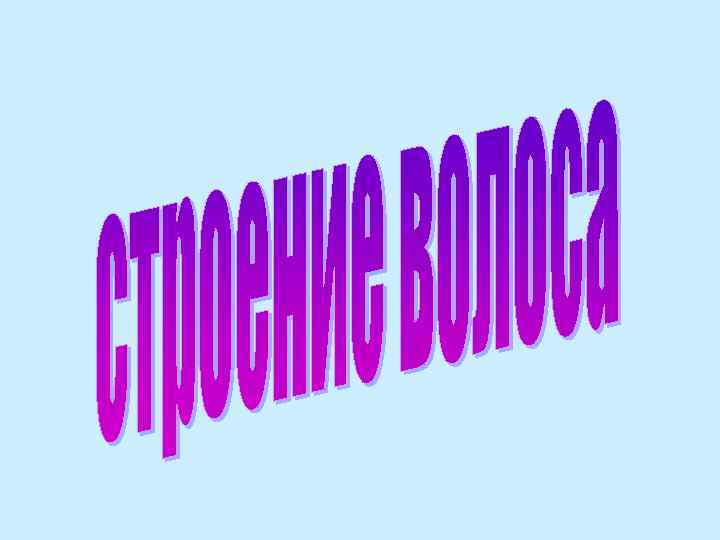 • 95% кожи покрыта волосами • различают длинные, щетинистые и пушковые (велусные) волосы • понятие «терминальные волосы» замена в течение жизни под действием андрогенов велусных волос на более грубые, пигментированные и длинные волосы (борода, грудь, спина у мужчин, конечности у женщин и мужчин).