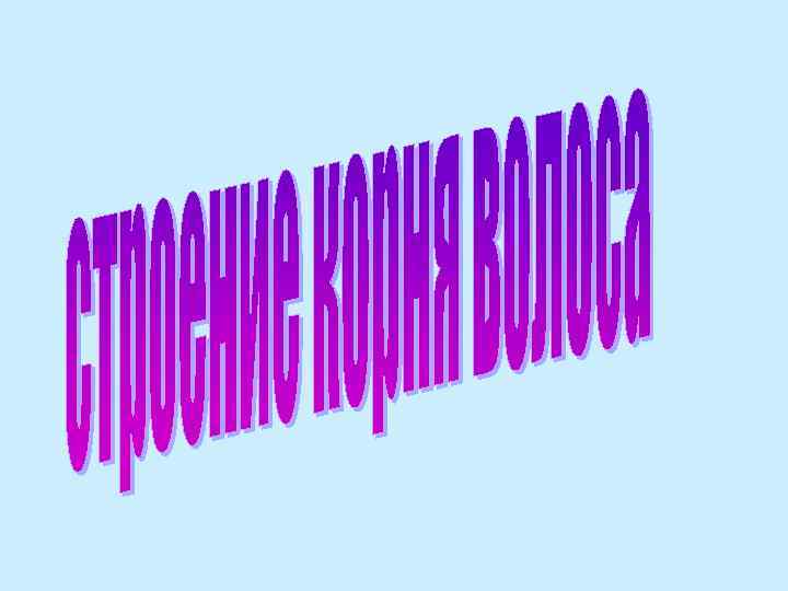 • различают корень волоса и стержень • корень волоса окружен внутренним и наружным корневым влагалищем • вместе с корнем они формируютфолликул волоса • волосяной фолликул окружен соединительнотканным образованием – волосяной сумкой • проксимальная расширенная часть корня – луковица волоса