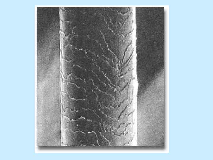 • стержень волоса – самое устойчивое образование к воздействию внешней среды! (уступает только зубам) • устойчивость обеспечивается: цементирующим материалом эпикутикулы волоса, наличием белка цистеина в кератиноцитах, наличием дисульфидных и сульфидных связей