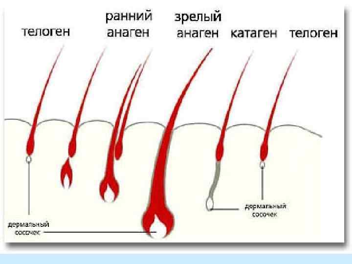 Смена волос. Цикл развития - уникальное свойство волос! - стадии роста: 1. Анаген 2. Катаген 3. Телоген