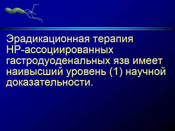 Лечение ЯБ. Эрадикация НР • 1996 г- I Маастрихтское соглашение - По диагностике и лечению НР • 2000 г II Маастрихтское соглашение: • При выявлении НР эрадикация ОБЯЗАТЕЛЬНА • Успешной считается эрадикация, дающая положительные результаты в 90%.