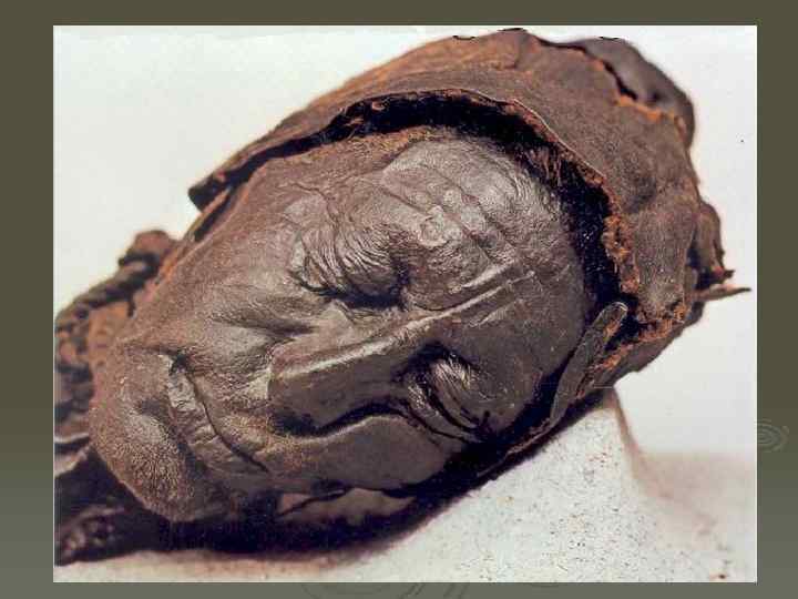 Мумифицирующее действие болот Ø Человек из Толлунда — так назвали мужчину, жившего в эпоху доримского железного века и умершего примерно в IV веке до н. э. , чьё тело было обнаружено в одном из торфяных болот Ютландии в Дании. Эта находка примечательна тем фактом, что тело человека и особенно его голова на удивление хорошо сохранились.