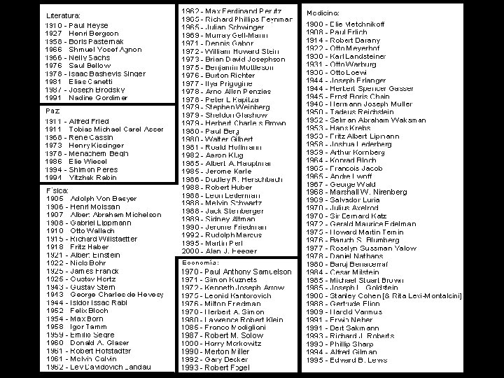 • A população global judia é de aproximadamente 14 milhões, ou 0, 02% do total da população mundial. • Os judeus receberam os seguintes prêmios: