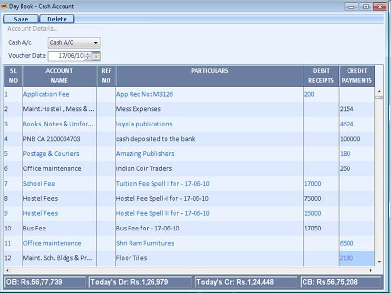Daybooks include: Sales daybook, for recording all the sales invoices. Sales credits daybook, for recording all the sales credit notes. Purchases daybook, for recording all the purchase invoices. Purchases credits daybook, for recording all the purchase credit notes. Cash daybook, usually known as the cash book, for recording all money received. Petty Cash daybook, for recording small value purchases paid for by cash. General Journal daybook, for recording journals.